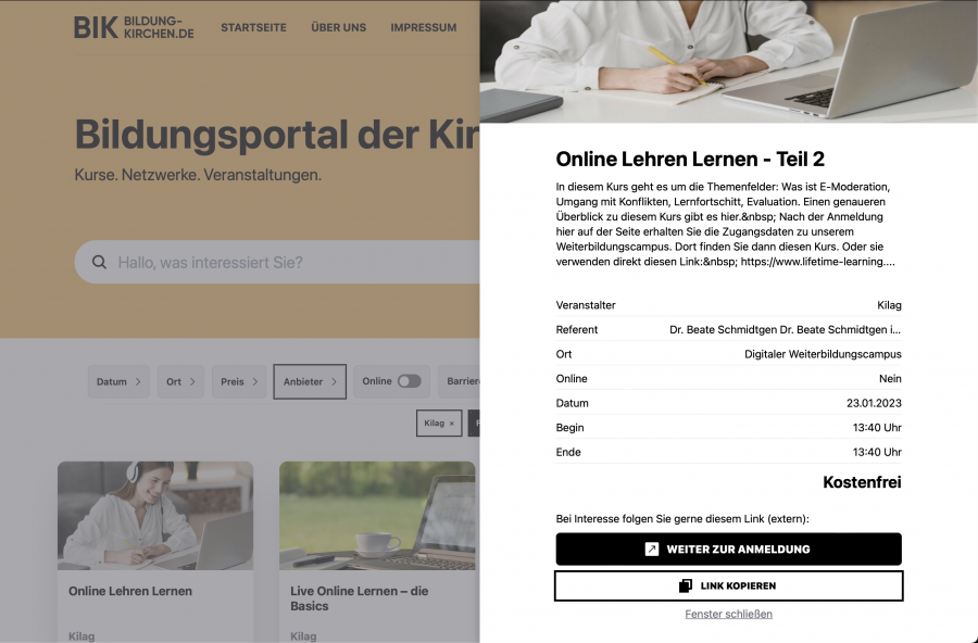 Hier der Link zur Anmeldung als neuer Veranstalter am neuen Bildungsportal der Kirchen: