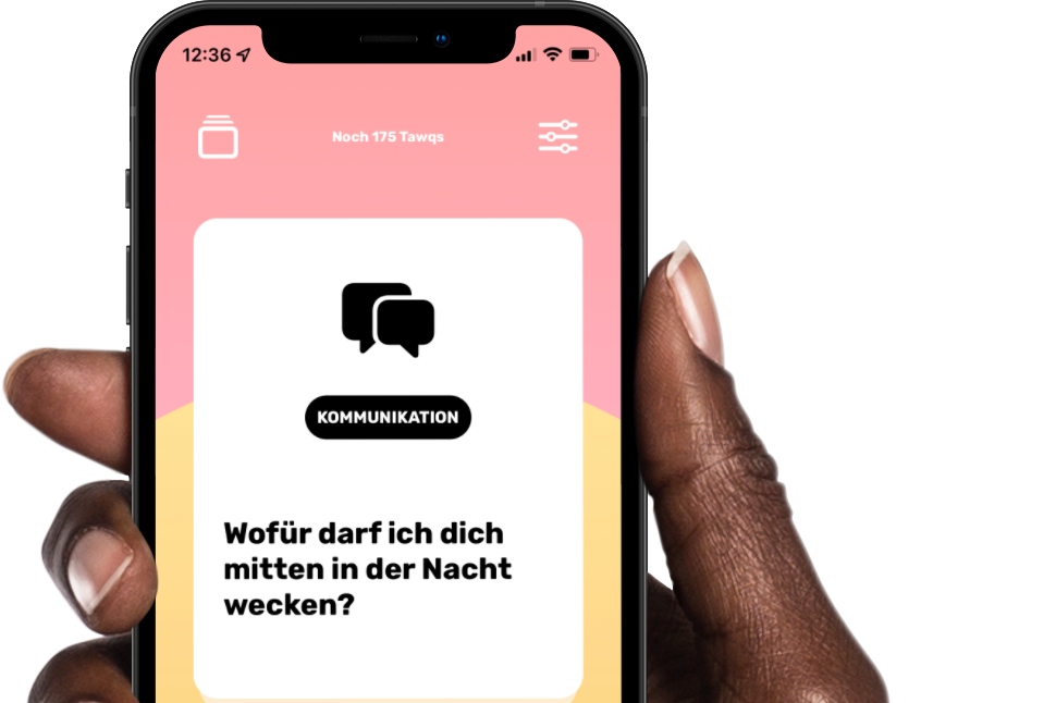 Tawq ist die App für mehr Deeptalk in Beziehungen. Ein kostenloses -Projekt von Chrissi Kalbreier und David Lehmann alias Designerpfarrer.